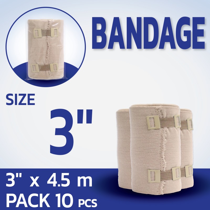 Elastic Bandage ผ้ายืดพันเคล็ด 3นิ้ว ยาว4.5เมตร (12ชิ้น/แพ็ค)